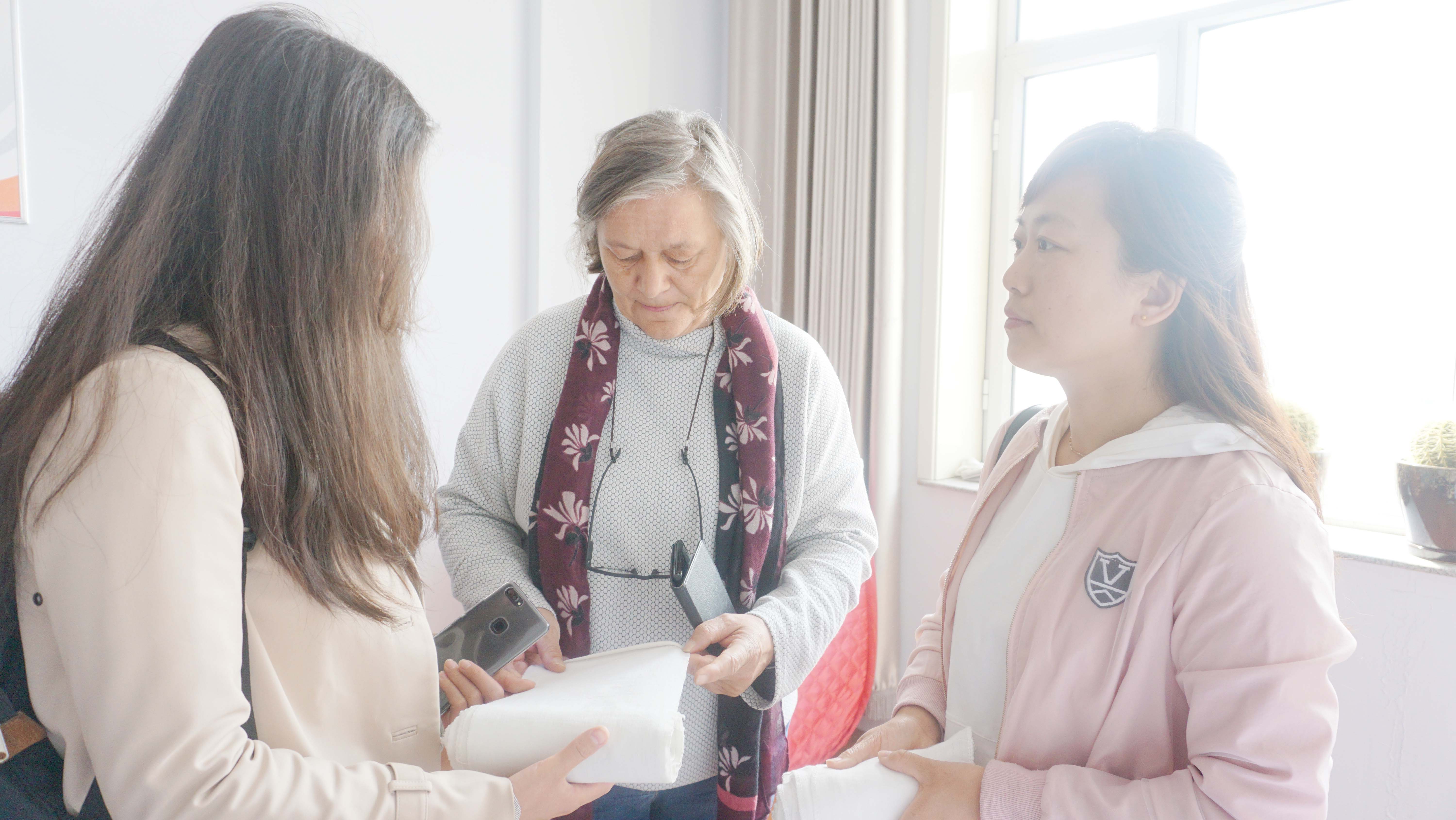 2018年4月20日,德國(guó)婦女保健專(zhuān)家郝伊特(Haueter)深入烏蘭美參觀考察,烏蘭美培訓(xùn)部主管聶彥霞、烏蘭美國(guó)際母嬰服務(wù)港主管王淑英陪同參觀,酒泉職業(yè)技術(shù)學(xué)院陳瑞老師擔(dān)任翻譯。